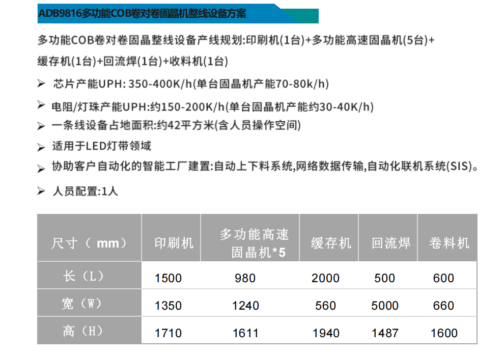 ADB9816多功能COB卷对卷固晶机整线设备方案
