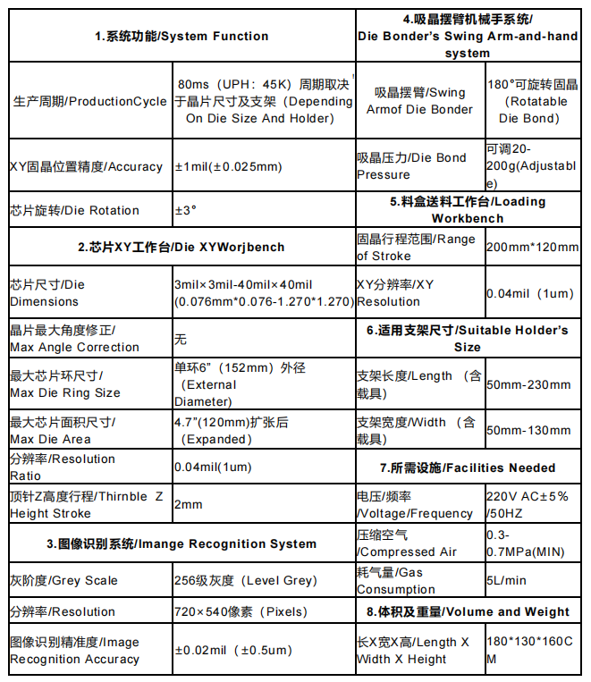 2、自主研发与稳定性能 :自主研发的取固晶邦头及双点胶结构,保证设备工作的精度及稳定性。90% 的结构配件已国产化,有效避免配件更换周期长的问题,保障生产连续性。