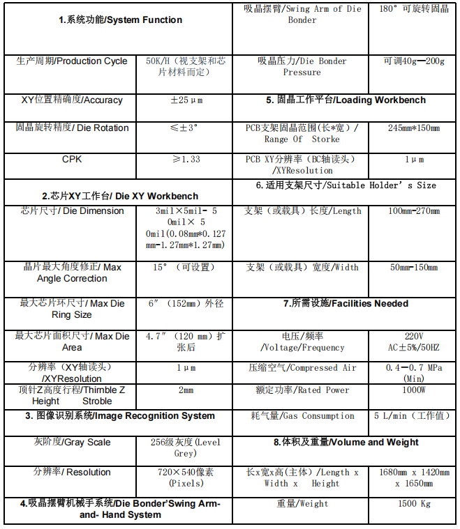 4、精湛邦头机构 :业内先进的邦头机构,固晶稳定性与一致性俱佳,基本不出现跑三点问题。同样 选用国内外一线品牌动力及核心配件,确保运行可靠性与寿命;固晶吸咀为常规款式,方便耗材采购, 且支持取固晶压力调节功能,满足不同工艺需求。